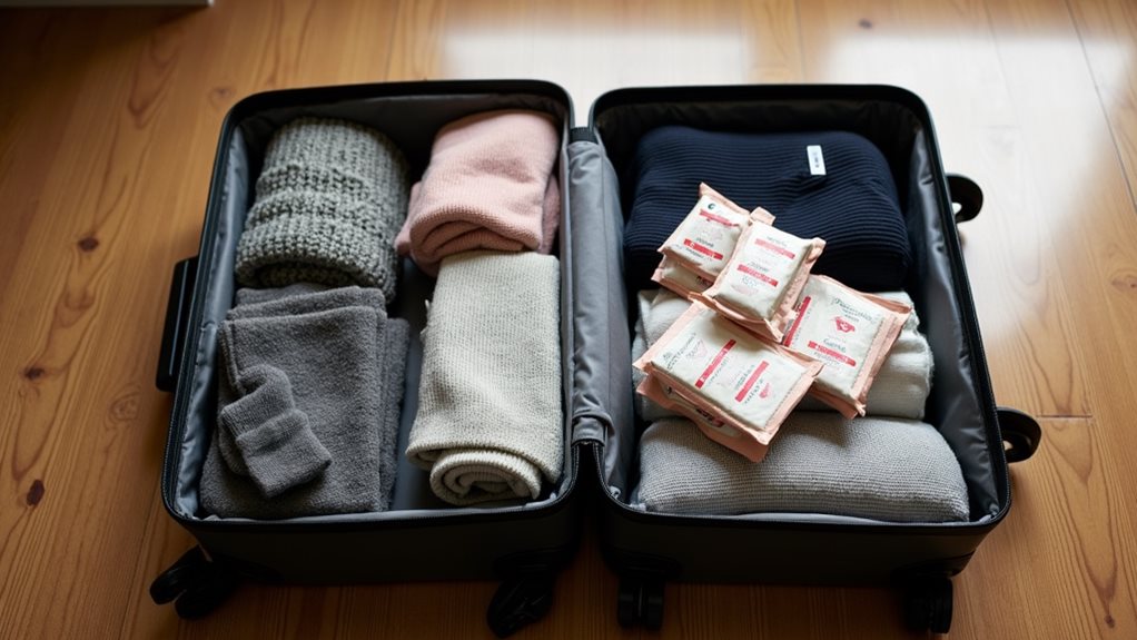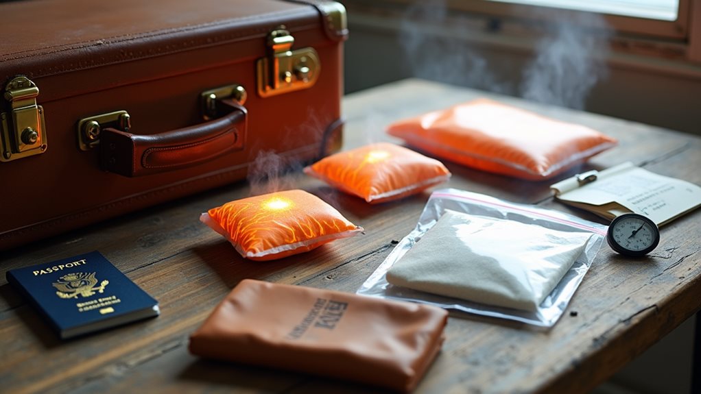 When traveling with hand warmers, you’ll need to follow TSA guidelines carefully to guarantee a smooth security process. Keep your air-activated warmers in their original packaging, and remember you’re allowed to pack them in both carry-on and checked bags. For maximum safety, store them separately from other items, and always declare them if asked. By following these packing tips and security protocols, you’ll stay warm while complying with all travel regulations.